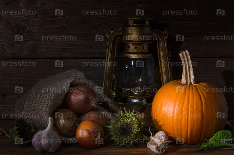 Натюрморт с керосиновой лампой и тыквами