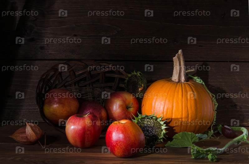 Натюрморт: тыква и яблоки