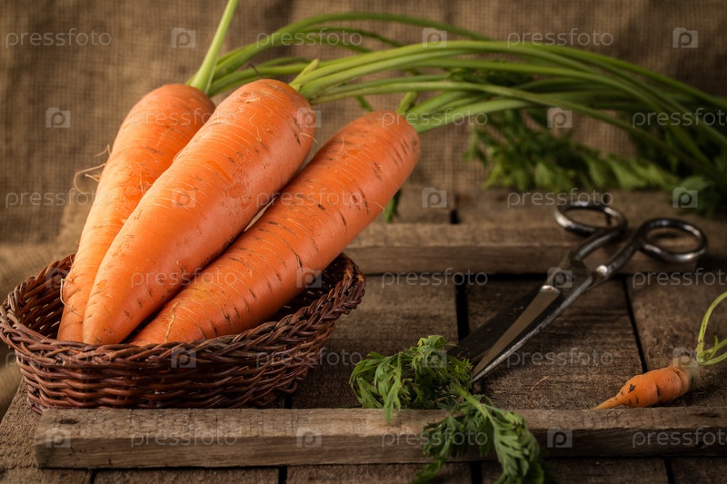 Свежая морковь в корзине