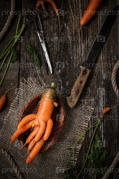 Необычная морковь на старом деревянном столе