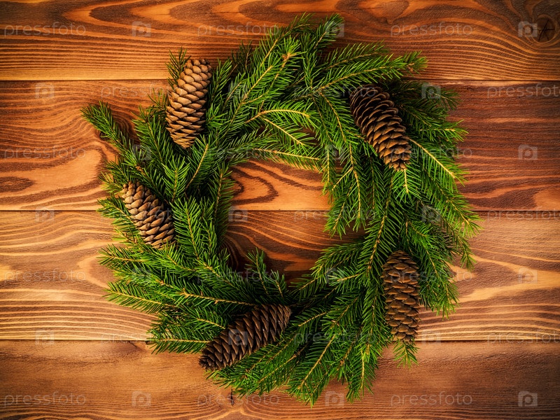 Рождественский венок из еловых веток с шишками