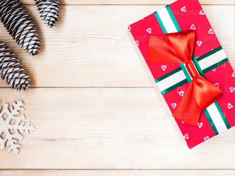 Новогодняя тема с еловыми шишками и подарком