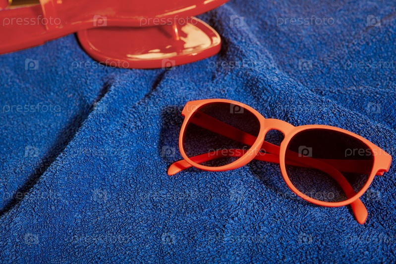 Солнцезащитные очки на синем полотенце