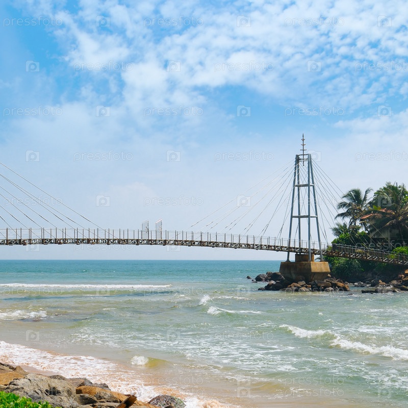 Мост на острове с буддийским храмом, Матар, Шри-Ланка