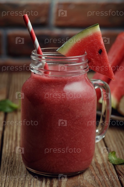 Свежеприготовленные коктейли из кусочков арбуза и банана