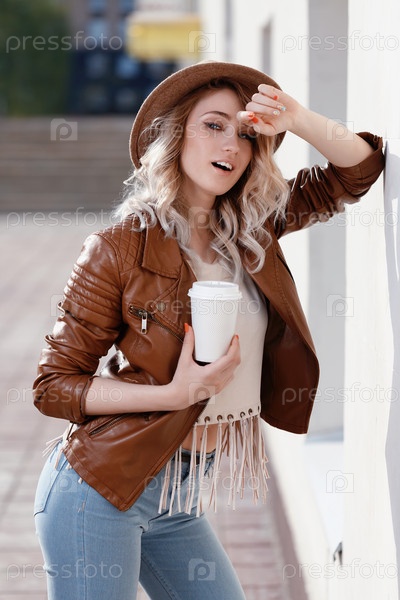 Красивая молодая девушка с кофе