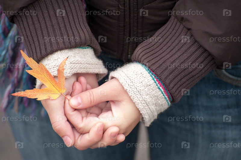 Девушка в куртке держит упавший желтый лист
