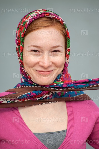 Портрет рыжей девушки с платком на голове