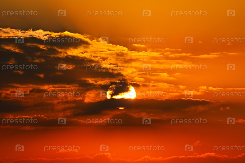 Красивый восход солнца и облачное небо