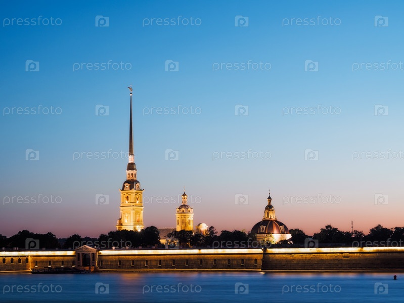 Петропавловская крепость в ночное время. Россия, Санкт-Петербург