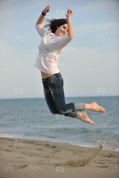 Счастливая молодая девушка на пляже