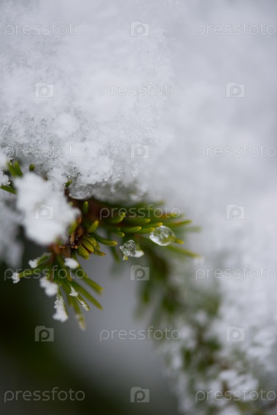 Вечнозеленые сосны покрыты свежим снегом