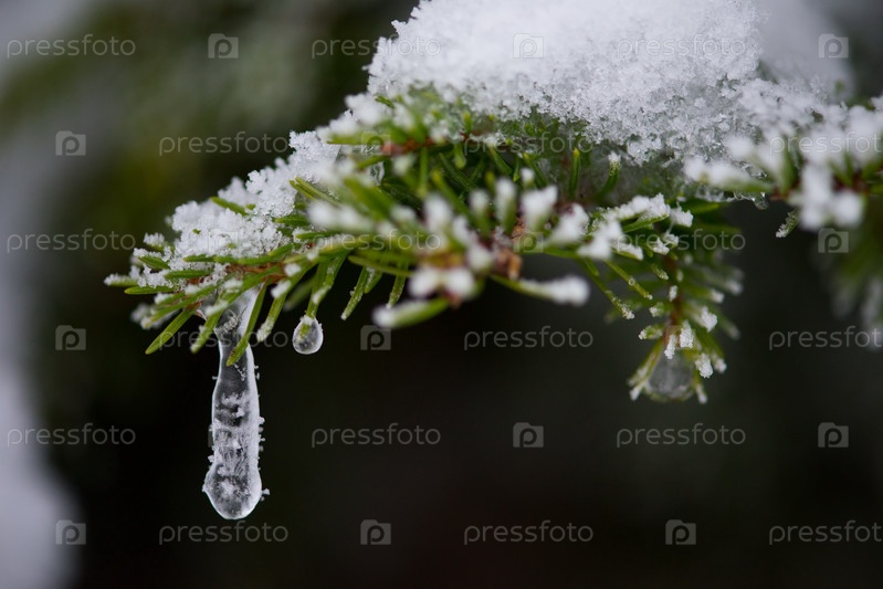 Вечнозеленые сосны покрыты свежим снегом