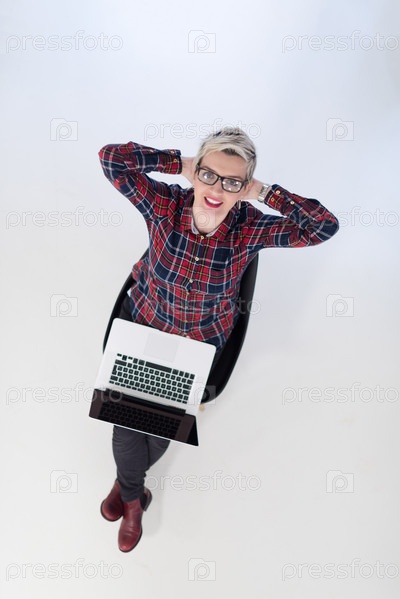 Вид сверху молодой деловой женщины с компьютером