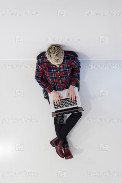 Вид сверху молодой деловой женщины с компьютером