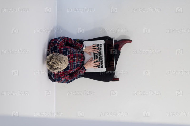 Вид сверху молодой деловой женщины с компьютером