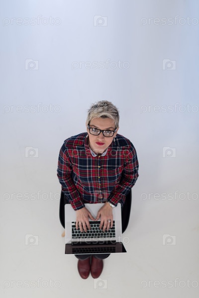 Вид сверху молодой деловой женщины с компьютером