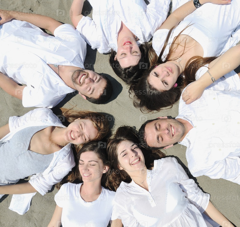 Группа счастливых молодых на пляже