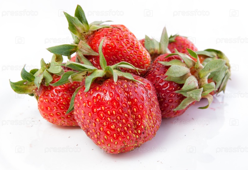 Несколько спелых ягод клубники на белом фоне