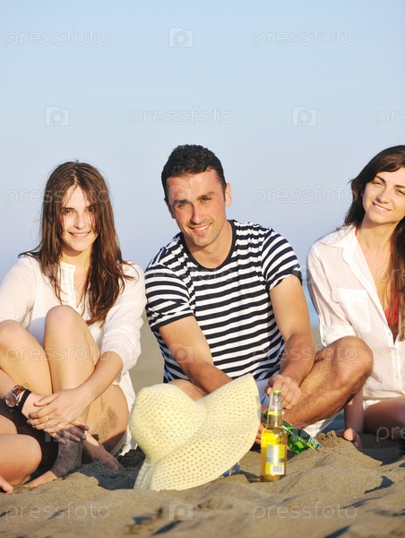 Счастливые молодые люди на пляже