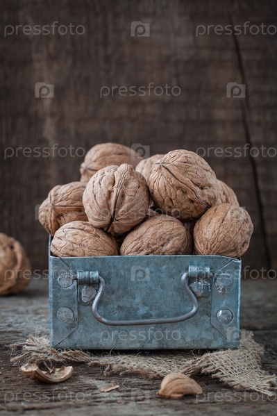 Грецкие орехи в небольшой коробке