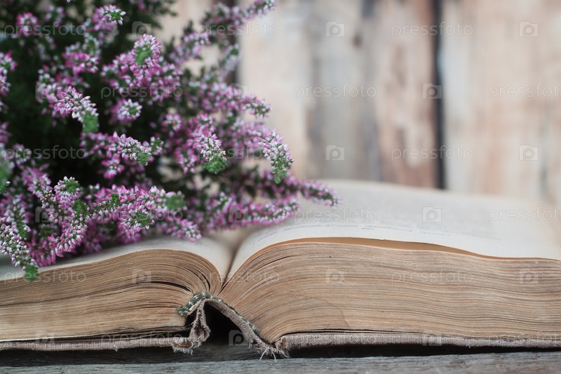 Цветы на фоне старой книги