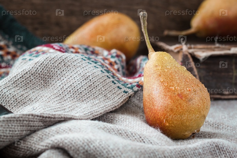 Красные и желтые груши на свитере