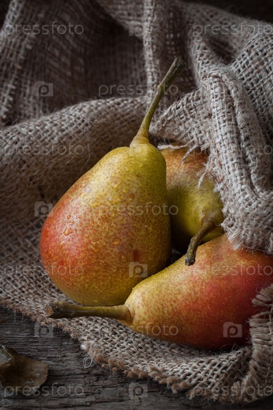 Спелые груши на деревянном фоне