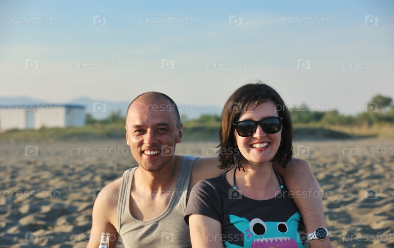 Счастливая молодая пара на пляже