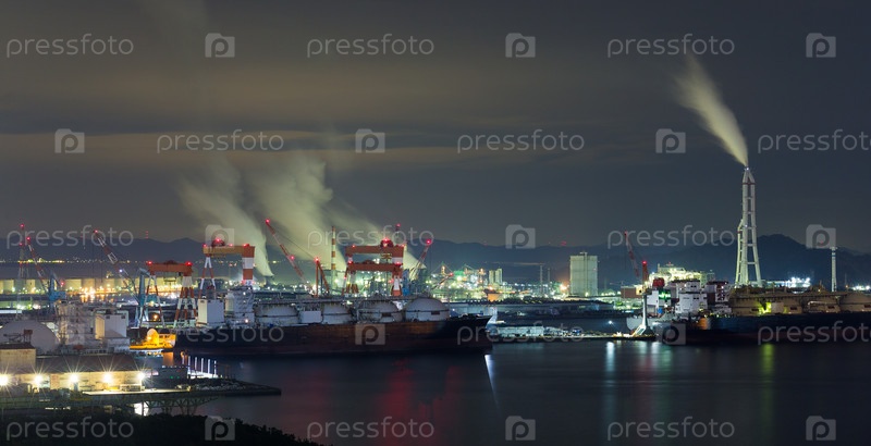 Промышленный завод в Курашиках в ночное время
