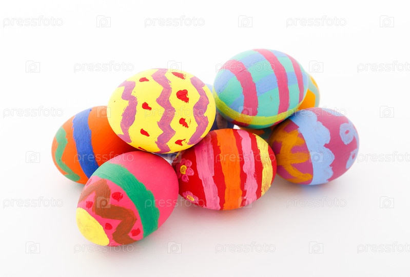 Пасхальные яйца на белом фоне