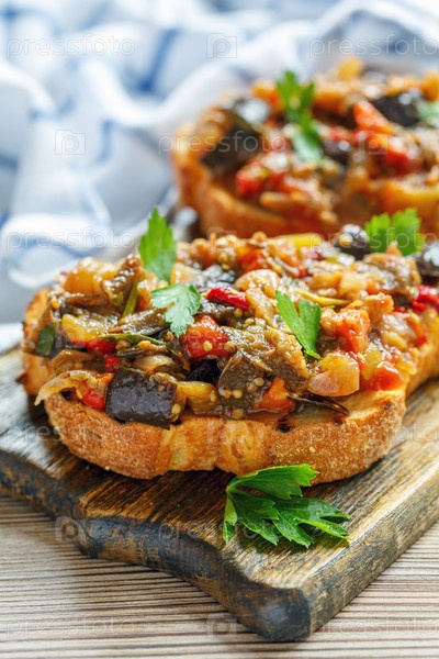 Кростиньи из кукурузного хлеба с запеченными овощами