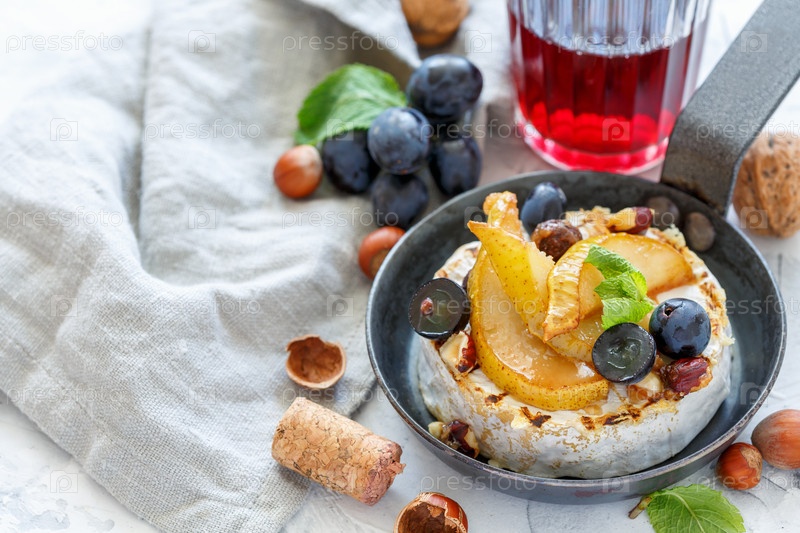 Запеченный камамбер с грушей и виноградом