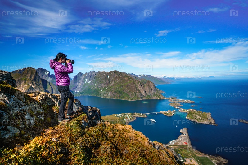 Девушка фотографирует природу