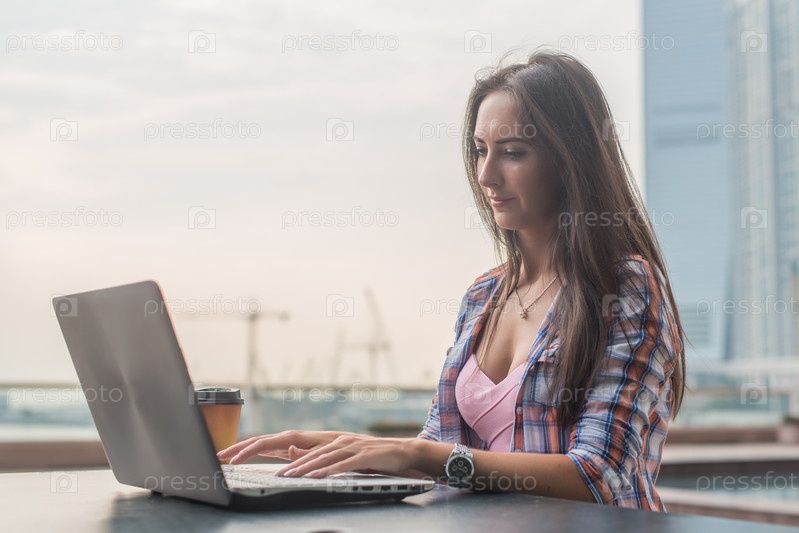 Молодая женщина, используя ноутбук