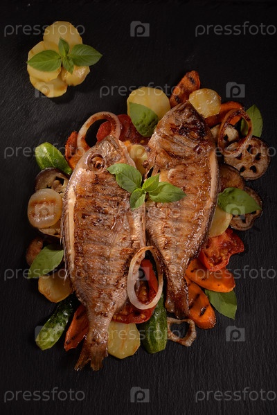 Рыба с жареными овощами