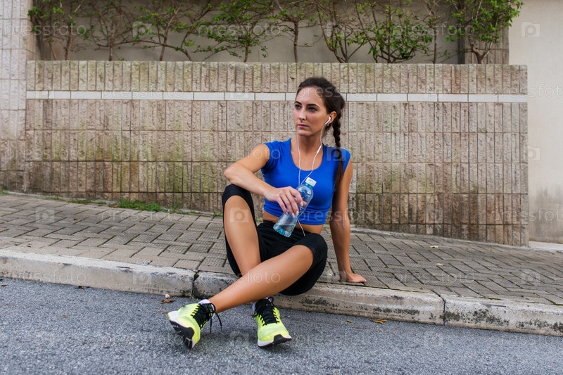 Молодая спортивная женщина отдыхает после выполнения упражнения