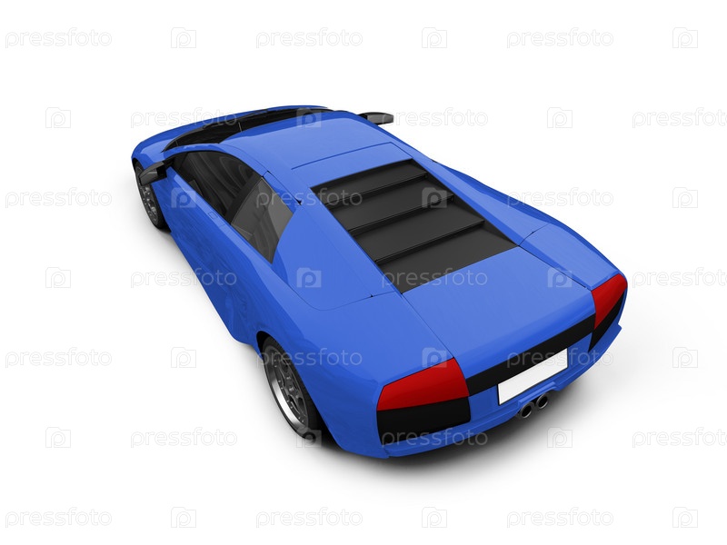 Спортивный автомобиль синего цвета на белом фоне