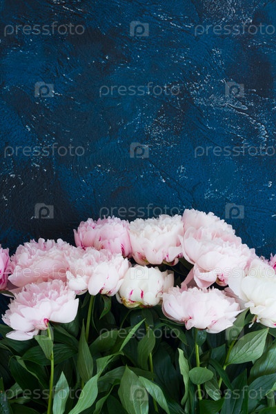Свежие пионы на синем
