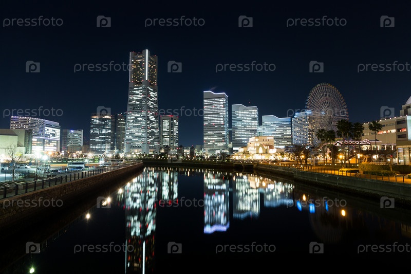 Город Йокохама в ночное время