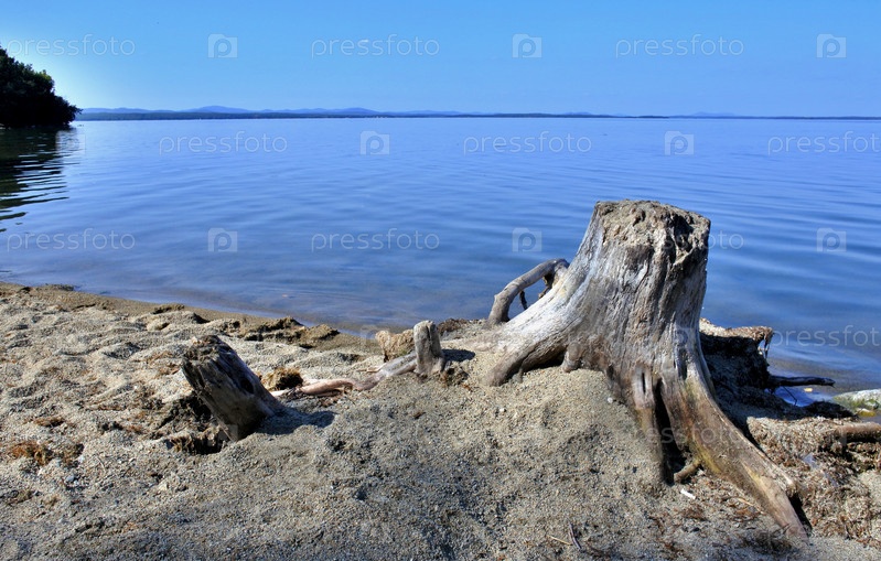 Старый высушенный пенек на озере
