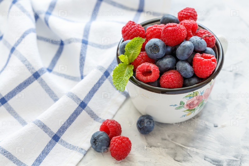 Кружка с черникой и малиной