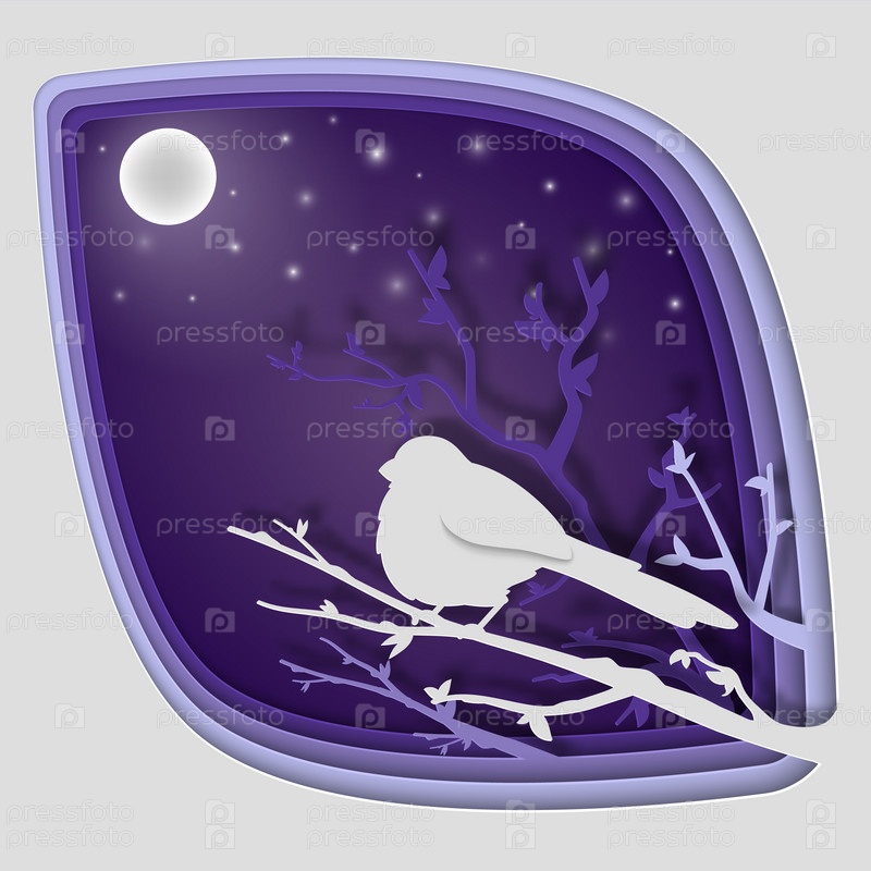Искусство вырезания бумаги: птицы на ветке дерева в лесу