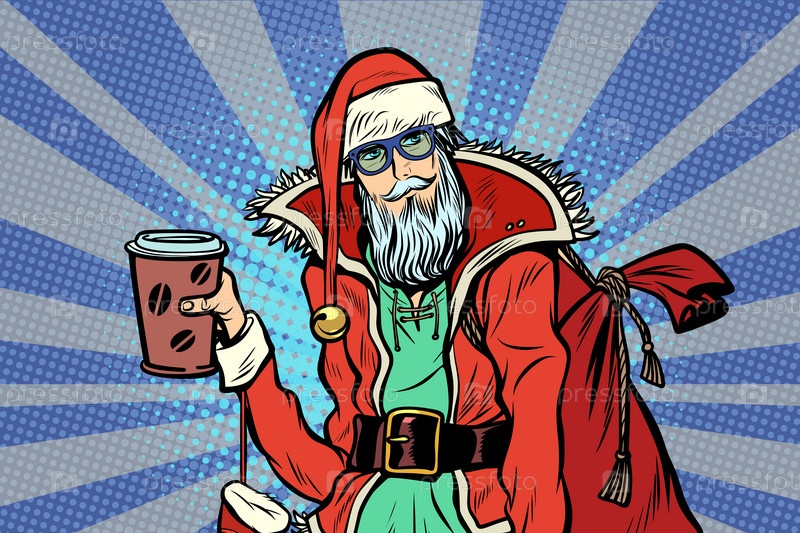 Санта-Клаус хипстер с кофе