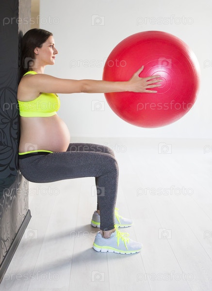 Молодая беременная женщина делает упражнения по фитнесу