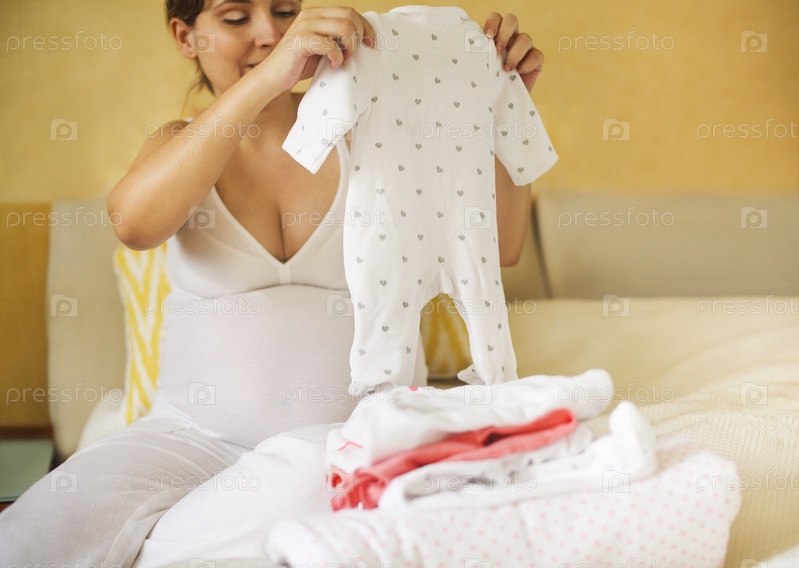 Беременная женщина с одеждой младенца