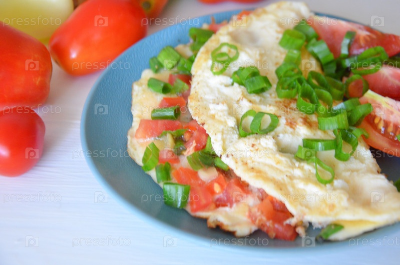 Омлет с помидорами и зеленым луком