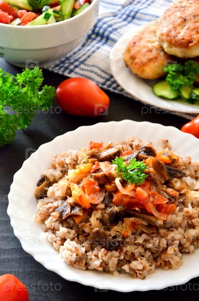 Гречка с тушеными овощами и грибами