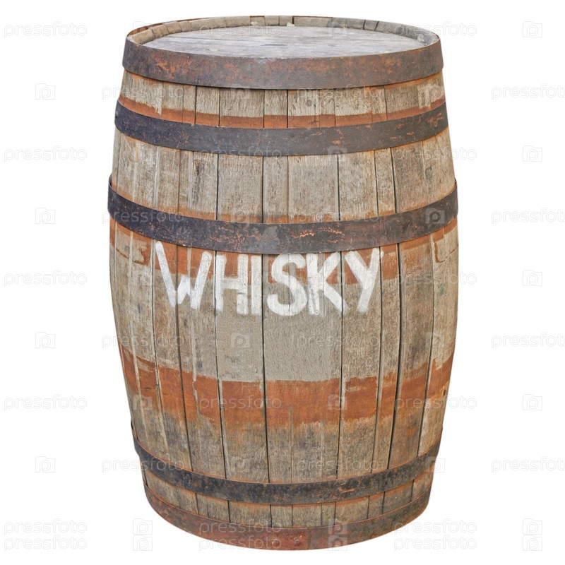 Старая деревянная бочка для виски, изолировано на белом фоне