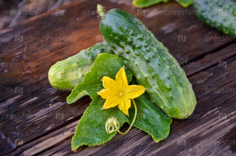 Огурцы с листьями и цветком